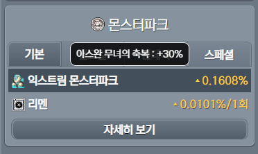 검색 된 캐릭터가 이벤트로 획득한 컨텐츠 경험치 추가 스킬의 효과가 자동으로 적용됩니다. (ex. 그란디스 일일퀘스트 경험치 추가, 몬스터파크 클리어 경험치 추가 등)