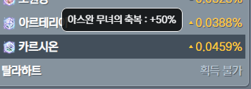 적용 된 효과가 있을 경우 노란 글씨로 보여지고, 마우스를 올리면 상승 된 수치가 보여집니다.